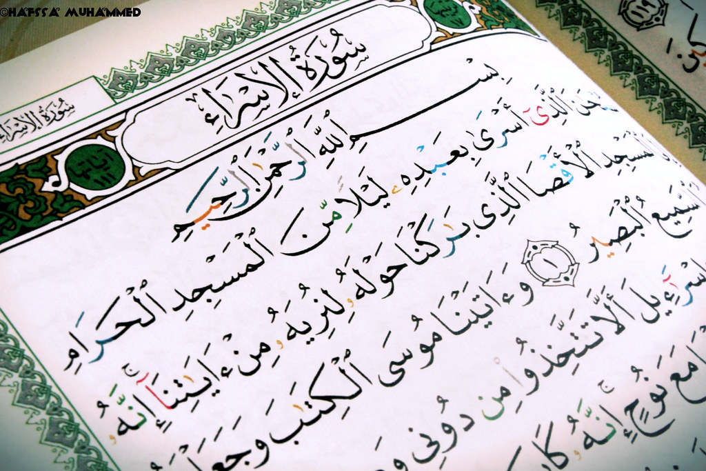 1. «سُبْحَانَ الَّذِي أَسْرَى بِعَبْدِهِ لَيْلًا مِنَ الْمَسْجِدِ الْحَرَامِ إِلَى الْمَسْجِدِ الْأَقْصَى الَّذِي بَارَكْنَا حَوْلَهُ لِنُرِيَهُ مِنْ آيَاتِنَا